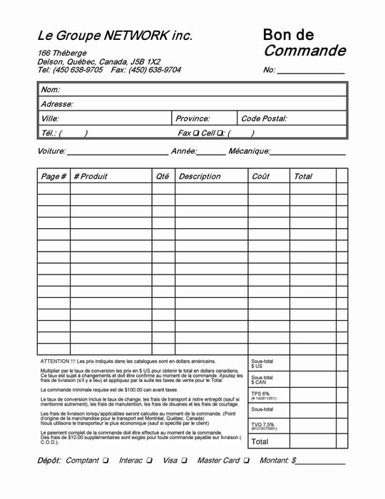 Il est très important de vérifier l’exactitude de votre commande avant de nous la faire parvenir. Bien que nous vérifions toutes les informations, nous ne sommes pas responsables d’erreurs commises par le client.